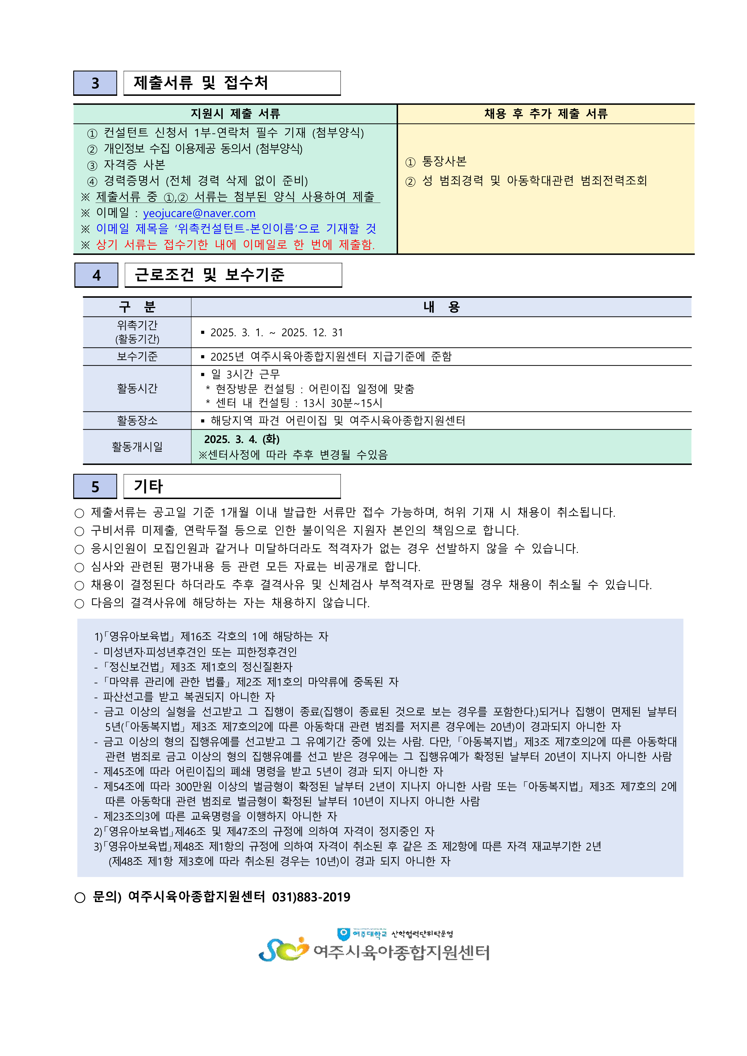 ¿©ÁÖ½ÃÀ°¾ÆÁ¾ÇÕÁö¿ø¼¾ÅÍ ºñ»ó±Ù ÄÁ¼³ÅÏÆ® ÀçÀ§ÃË °ø°í