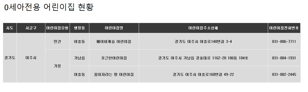 ![]() °æ±âµµ ³» "0¼¼¾Æ Àü¿ë ¾î¸°ÀÌÁý" ÇöȲÀº (2021.8¿ù¸» ±âÁØ) ÷ºÎÆÄÀÏÀ» È®ÀÎÇØ ÁÖ¼¼¿ä.