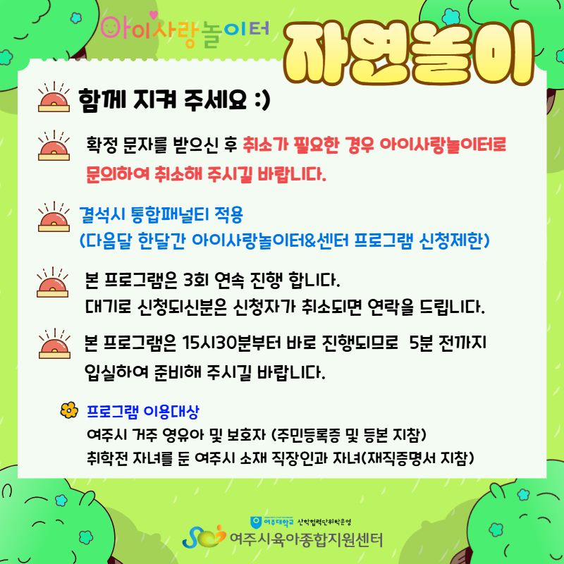 ¾ÆÀÌ»ç¶û³îÀÌÅÍ 10¿ù ÀÚ¿¬³îÀÌ ÇÁ·Î±×·¥ ¾È³»
