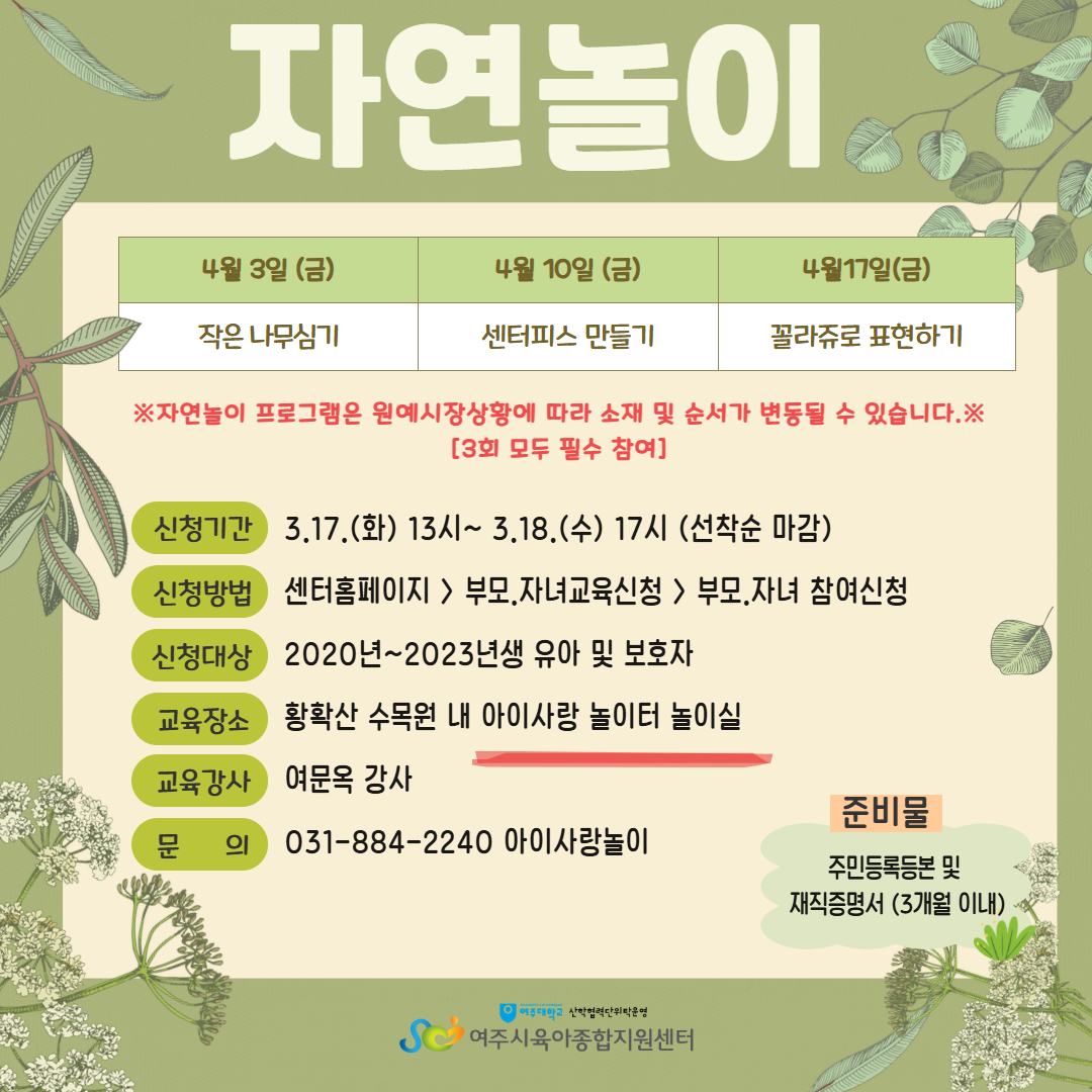 4¿ù ¾ÆÀÌ»ç¶û³îÀÌÅÍ ÀÚ¿¬³îÀÌ ÇÁ·Î±×·¥ ¾È³»