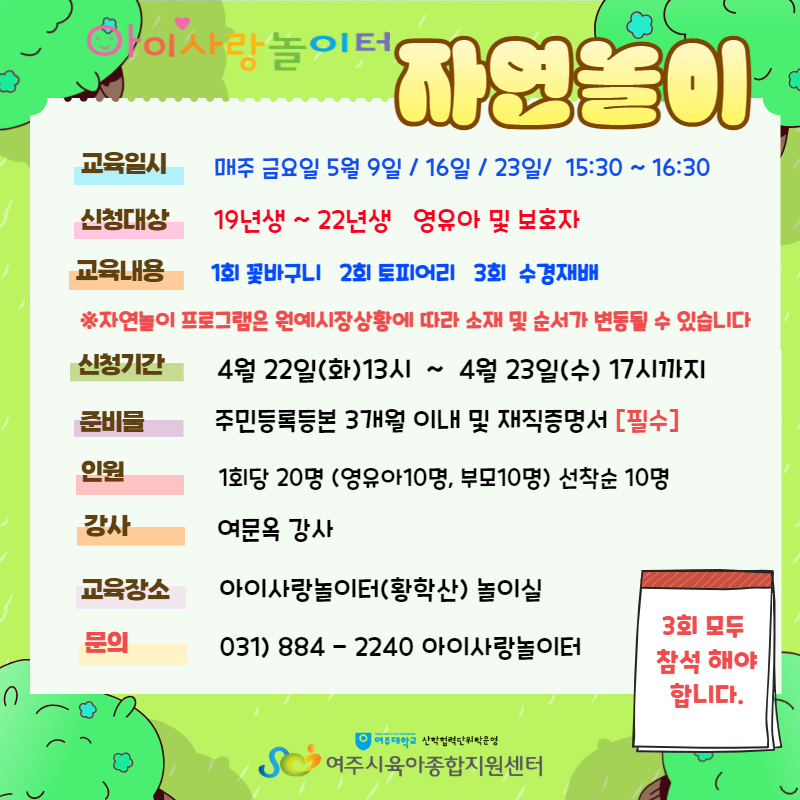 ¾ÆÀÌ»ç¶û³îÀÌÅÍ 5¿ù ÀÚ¿¬³îÀÌ ÇÁ·Î±×·¥ ¾È³»