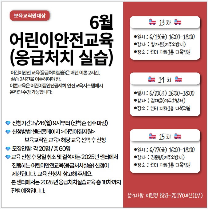 | ±âŸ»çÇ× | *±³À° ½ÃÀÛ 5ºÐ Àü±îÁö ÀÔ½Ç ¿Ï·áÇØ ÁÖ½Ã°í ±³À° ½ÃÀÛ 10ºÐ ÈÄ ÀÔÀå ºÒ°¡ÇÕ´Ï´Ù. *±³À° ´çÀÏ Ãë¼Ò ¹× °á¼®Àº 2025³â ¼¾ÅÍ ÁøÇà ¾î¸°ÀÌ ¾ÈÀü±³À°(ÀÀ±Þóġ ½Ç½À) ½Åû ºÒ°¡ÇÕ´Ï´Ù. *¼¾ÅÍ ÁÖÂ÷ÀåÀÌ ¸Å¿ì Çù¼ÒÇÕ´Ï´Ù. ÁÖÂ÷·Î ÀÎÇØ ´ÊÁö ¾Êµµ·Ï ¼µÑ·¯ ÁÖ¼¼¿ä. |