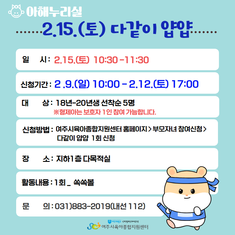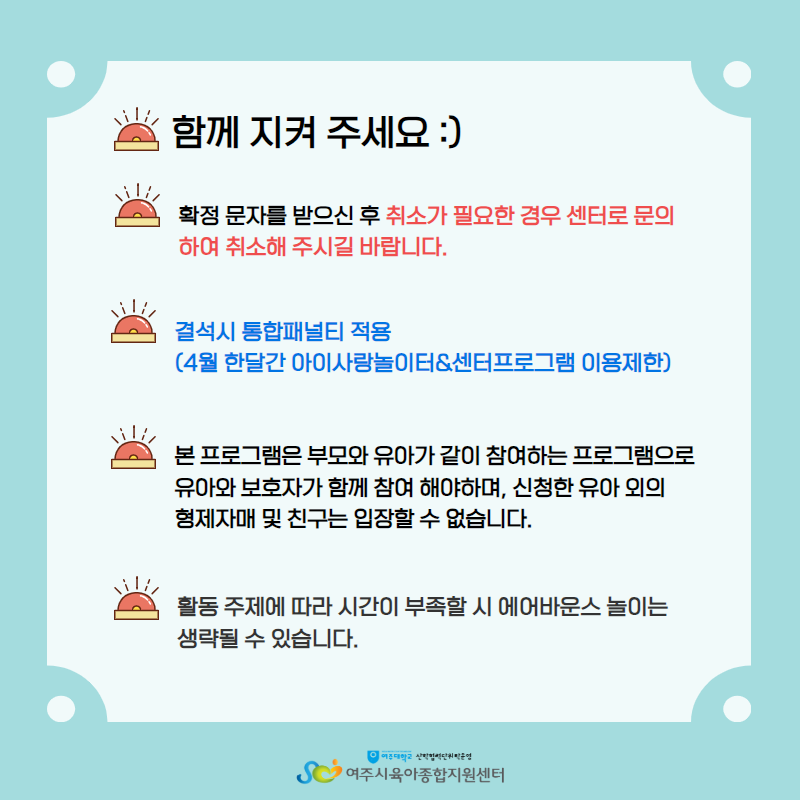 | ±âŸ»çÇ× | ¡Ú¹Ýµå½Ã À¯¾Æ 1ÀÎ º¸È£ÀÚ 1ÀÎ Âü¿©À̸ç ÇüÁ¦¾Æ´Â º¸È£ÀÚ 1Àεµ °¡´É. -ÇÁ·Î±×·¥ ´çÀÏ Ãë¼Ò³ª °á¼®Àº ´ÙÀ½´Þ ÇÁ·Î±×·¥ À̿뿡 Á¦ÇÑÀÌ µÉ¼ö ÀÖÀ¸´Ï Âü°íÇϽñ⠹ٶø´Ï´Ù. |