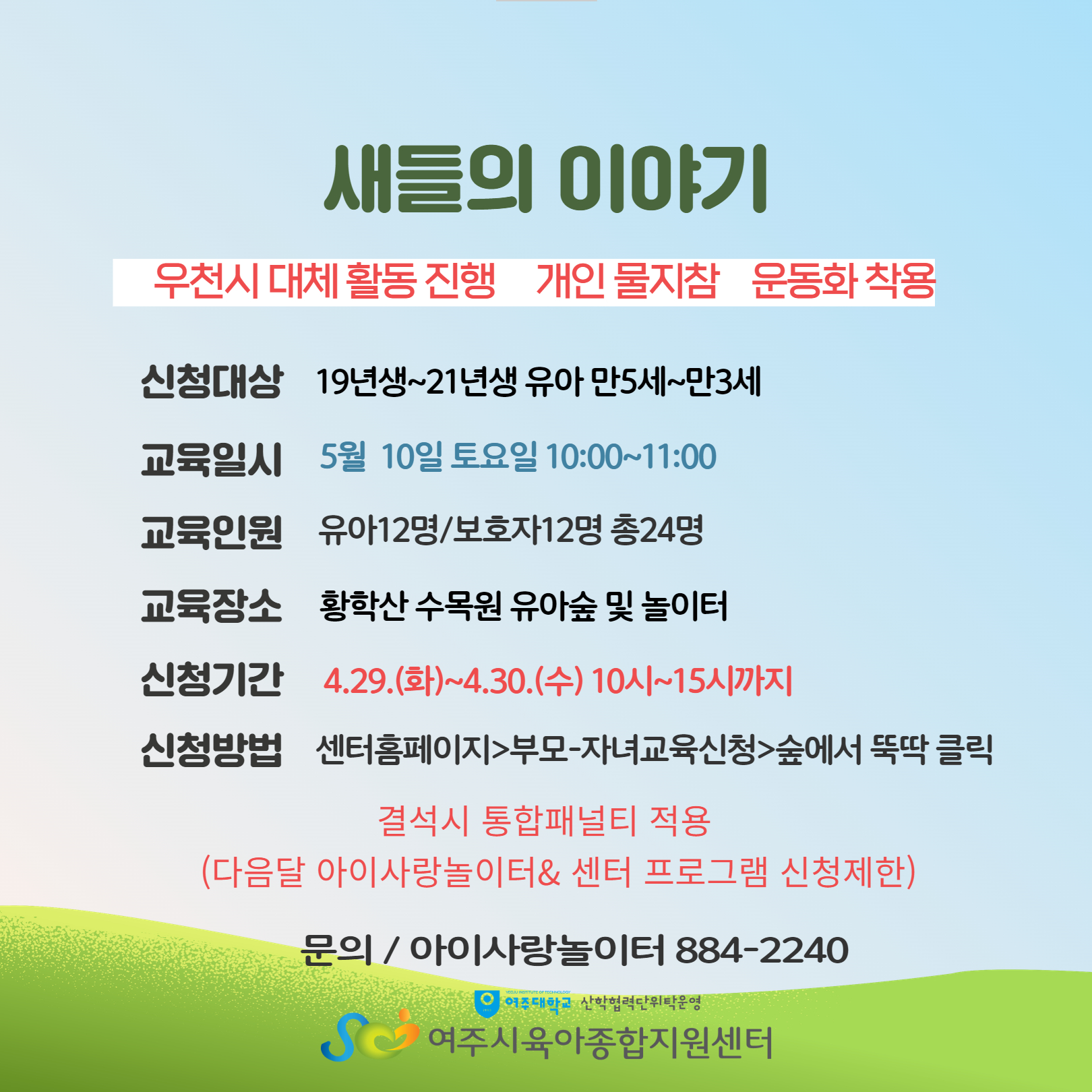 | (19~21³â)5¿ù10ÀÏ ¾ÆÀÌ»ç¶û³îÀÌÅÍ ½£¿¡¼ ¶ÒµüÇÁ·Î±×·¥ / »õµéÀÇ À̾߱â | |||
