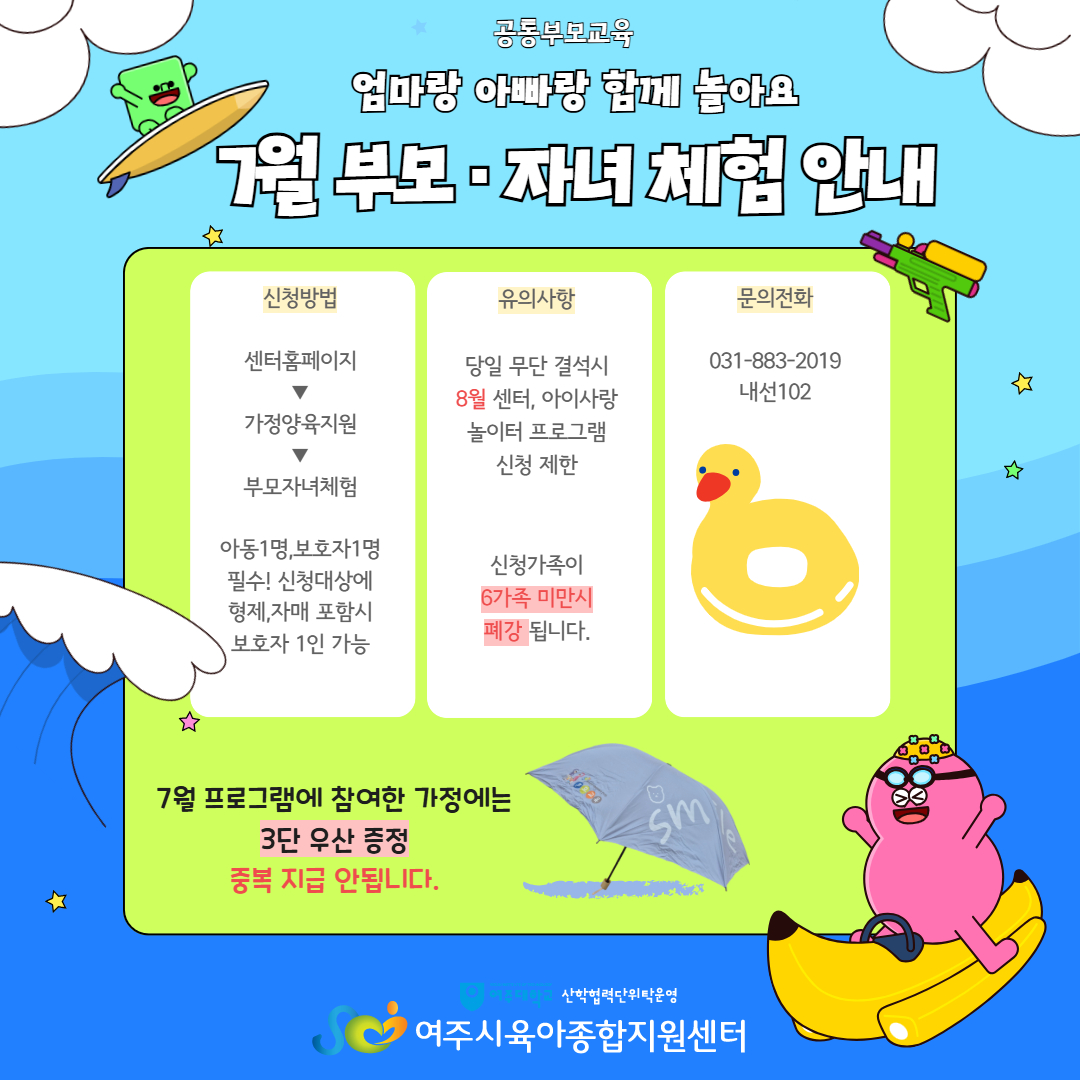 | (22-23³â»ý) 7¿ù ¾ö¸¶¶û ¾Æºü¶û ÇÔ²² ³î¾Æ¿ä [°í¹«¹êµå·Î ±âÂ÷ ³îÀÌÇØ¿ä 1Â÷] | |||