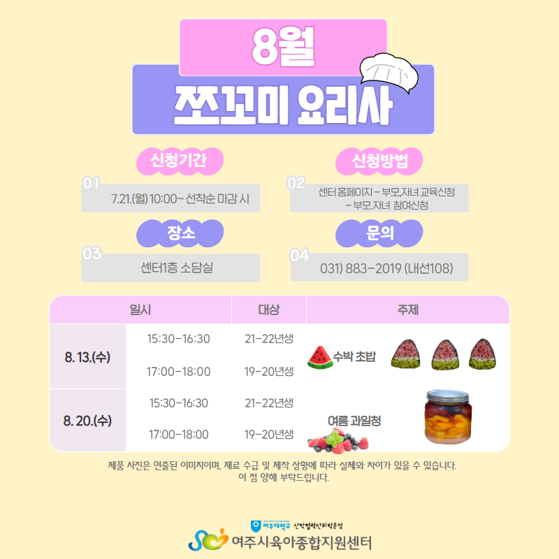 | (21-22³â»ý) Âɲ¿¹Ì ¿ä¸®»ç [¼ö¹ÚÃʹä] 8.13.(¼ö) 15:30 | |||