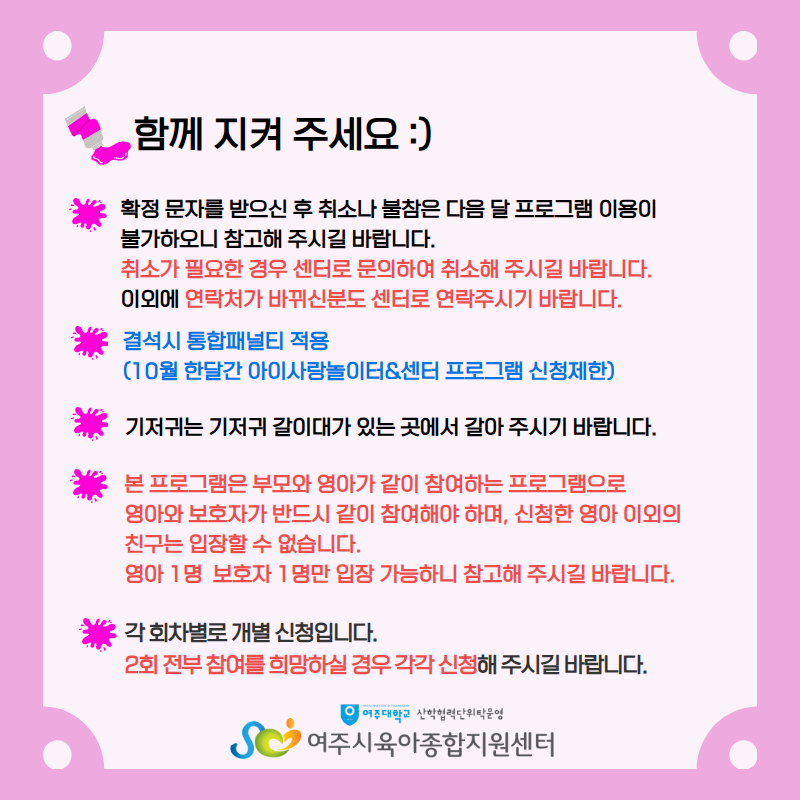 | ±âŸ»çÇ× | ¡Ú¹Ýµå½Ã ¿µ¾Æ 1ÀÎ º¸È£ÀÚ 1ÀÎ Âü¿© -ÇÁ·Î±×·¥ ´çÀÏ Ãë¼Ò³ª °á¼®Àº ´ÙÀ½´Þ ÇÁ·Î±×·¥ À̿뿡 Á¦ÇÑÀÌ µÉ¼ö ÀÖÀ¸´Ï Âü°íÇϽñ⠹ٶø´Ï´Ù. |
