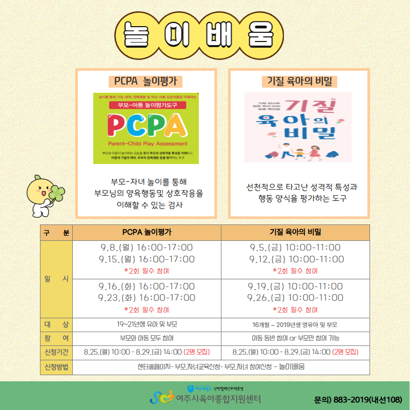 | ±âŸ»çÇ× | - ÁÖÂ÷ÀåÀÌ Çù¼ÒÇÏ¿À´Ï 5ºÐÀü±îÁö µµÂøÇÏ¿© »ó´ã ½Ã°£¿¡ ´ÊÁö ¾Êµµ·Ï ÁÖÀǹٶø´Ï´Ù. - º» ÇÁ·Î±×·¥Àº ½ÅûÇϽŠºÎ¸ð´Ô¸¸ Âü¿©ÇϽðųª ¾Æµ¿°ú ÇÔ²² µ¿¹ÝÇÏ¿© Âü¿© °¡´ÉÇÕ´Ï´Ù. - ÇÁ·Î±×·¥ ´çÀÏ °á¼® ½Ã ÅëÇÕÆÐ³ÎÆ¼°¡ Àû¿ëµÇ´Ï À¯ÀÇÇØÁÖ¼¼¿ä (25³â 10¿ù ÇÑ´Þ °£ ¾ÆÀÌ»ç¶û ³îÀÌÅÍ& ¼¾ÅÍ ÇÁ·Î±×·¥ ½ÅûÁ¦ÇÑ) - °á¼® ½Ã Áõºù¼·ù¸¦ ²À ÁöÂüÇØ ÁÖ¼Å¾ß Çϸç Ãë¼Ò³ª °á¼®½Ã ´ã´çÀÚ¿¡°Ô ¿¬¶ôÁֽñ⠹ٶø´Ï´Ù. - ´ë±âÀÚ´Â ½Åû ¼øÀ¸·Î ¿¬¶ôµå¸®¸ç ºÎÀçÁß ½Ã ´ÙÀ½ ´ë±âÀÚ¿¡°Ô ¿¬¶ôµå¸³´Ï´Ù. - µÎ ȸ±â ¸ðµÎ Âü¿©ÇÏ¼Å¾ß ÇÔÀ¸·Î ÀÏÁ¤ È®ÀÎ ÈÄ Âü¿©°¡ ¸ðµÎ °¡´ÉÇϽаæ¿ì¿¡¸¸ ½ÅÃ»ÇØÁֽñ⠹ٶø´Ï´Ù. |