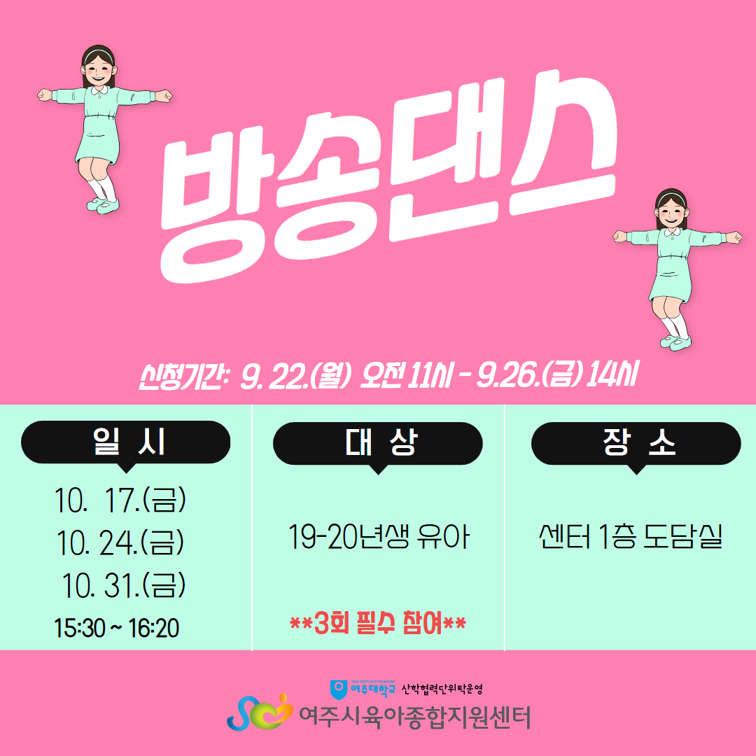| ±âŸ»çÇ× | - ÁÖÂ÷ÀåÀÌ Çù¼ÒÇÏ¿À´Ï 5ºÐÀü±îÁö µµÂøÇÏ¿© Ȱµ¿ ½Ã°£¿¡ ´ÊÁö ¾Êµµ·Ï ÁÖÀǹٶø´Ï´Ù. - ¼ö¾÷ 3ȸ ¸ðµÎ Âü¿©ÇØ¾ß ÇÏ´Â ÇÁ·Î±×·¥ÀÔ´Ï´Ù. - º» ÇÁ·Î±×·¥Àº ¾ÆÀ̸¸ Âü¿©ÇÏ´Â ºÐ¸® ¼ö¾÷ÀÔ´Ï´Ù. - ÇÁ·Î±×·¥ ´çÀÏ °á¼® ½Ã ÅëÇÕÆÐ³ÎÆ¼°¡ Àû¿ëµÇ´Ï À¯ÀÇÇØÁÖ¼¼¿ä (25³â 11¿ù ÇÑ´Þ °£ ¾ÆÀÌ»ç¶û ³îÀÌÅÍ& ¼¾ÅÍ ÇÁ·Î±×·¥ ½ÅûÁ¦ÇÑ) - °á¼® ½Ã Áõºù¼·ù¸¦ ²À ÁöÂüÇØ ÁÖ¼Å¾ß Çϸç Ãë¼Ò³ª °á¼®½Ã ´ã´çÀÚ¿¡°Ô ¿¬¶ôÁֽñ⠹ٶø´Ï´Ù. - ´ë±âÀÚ´Â ½Åû ¼øÀ¸·Î ¿¬¶ôµå¸®¸ç ºÎÀçÁß ½Ã ´ÙÀ½ ´ë±âÀÚ¿¡°Ô ¿¬¶ôµå¸³´Ï´Ù. - ´Ùȸ±â ÇÁ·Î±×·¥À¸·Î ÀÏÁ¤ È®ÀÎ ÈÄ Âü¿©°¡ ¸ðµÎ °¡´ÉÇϽаæ¿ì¿¡¸¸ ½ÅÃ»ÇØÁֽñ⠹ٶø´Ï´Ù. |