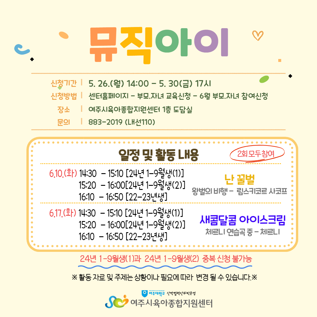 | ±âŸ»çÇ× | - ÁÖÂ÷ÀåÀÌ Çù¼ÒÇÏ¿À´Ï 5ºÐÀü±îÁö µµÂøÇÏ¿© Ȱµ¿ ½Ã°£¿¡ ´ÊÁö ¾Êµµ·Ï ÁÖÀǹٶø´Ï´Ù. - º» ÇÁ·Î±×·¥Àº ½ÅûÇÑ ¾ÆÀÌ1¸í°ú º¸È£ÀÚ 1Àθ¸ Âü¼®°¡´ÉÇÕ´Ï´Ù.(ÇüÁ¦,ÀڸŠÂü¿©ºÒ°¡) - ÇÁ·Î±×·¥ ´çÀÏ °á¼® ½Ã ÅëÇÕÆÐ³ÎÆ¼°¡ Àû¿ëµÇ´Ï À¯ÀÇÇØÁÖ¼¼¿ä (25³â 7¿ù ÇÑ´Þ °£ ¾ÆÀÌ»ç¶û ³îÀÌÅÍ& ¼¾ÅÍ ÇÁ·Î±×·¥ ½ÅûÁ¦ÇÑ) - °á¼® ½Ã Áõºù¼·ù¸¦ ²À ÁöÂüÇØ ÁÖ¼Å¾ß Çϸç Ãë¼Ò³ª °á¼®½Ã ´ã´çÀÚ¿¡°Ô ¿¬¶ôÁֽñ⠹ٶø´Ï´Ù. - ´ë±âÀÚ´Â ½Åû ¼øÀ¸·Î ¿¬¶ôµå¸®¸ç ºÎÀçÁß ½Ã ´ÙÀ½ ´ë±âÀÚ¿¡°Ô ¿¬¶ôµå¸³´Ï´Ù. - 1,2ȸ±â ¸ðµÎ Âü¼®ÇÏ¼Å¾ß ÇÕ´Ï´Ù. |