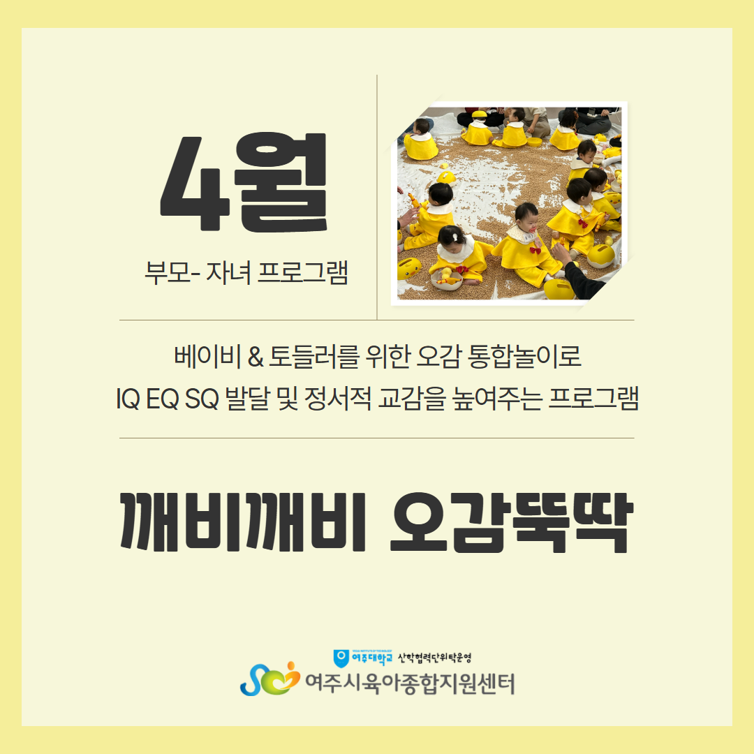 - º» ÇÁ·Î±×·¥Àº ½ÅûÇÑ ¾ÆÀÌ1¸í°ú º¸È£ÀÚ 1Àθ¸ Âü¼®°¡´ÉÇÕ´Ï´Ù.(ÇüÁ¦,ÀڸŠÂü¿©ºÒ°¡)