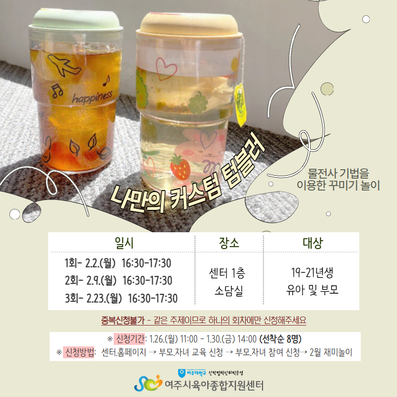 - 1,2,3ȸ °°Àº ÁÖÁ¦·Î ÁøÇàµÇ¿À´Ï Áߺ¹ ½ÅûÀº ºÒ°¡ÇÕ´Ï´Ù.