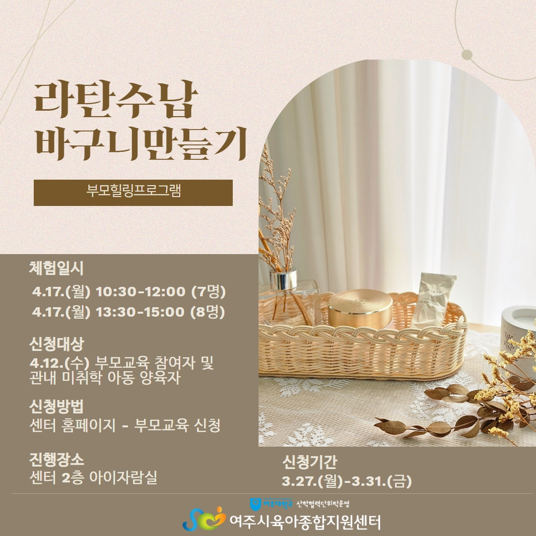 | ±âŸ»çÇ× | *** 4¿ù 12ÀÏ ºÎ¸ð±³À° Âü¿©ÀÚ ¿ì¼±Á¢¼ö ÇÁ·Î±×·¥ÀÔ´Ï´Ù *** | ||