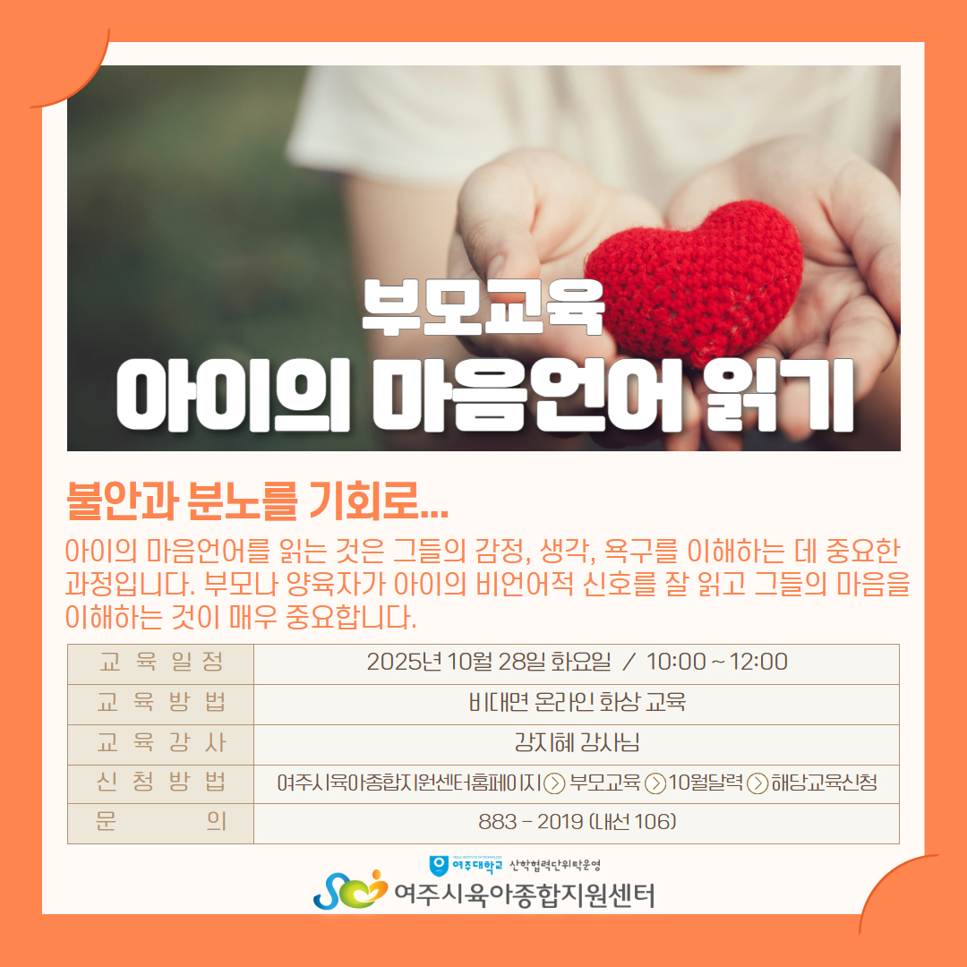 | ºÎ¸ð±³À° (10,28 È¿äÀÏ) ¾ÆÀÌÀÇ ¸¶À½¾ð¾îÀбâ- ºÒ¾È°ú ºÐ³ë¸¦ ±âȸ·Î | |||