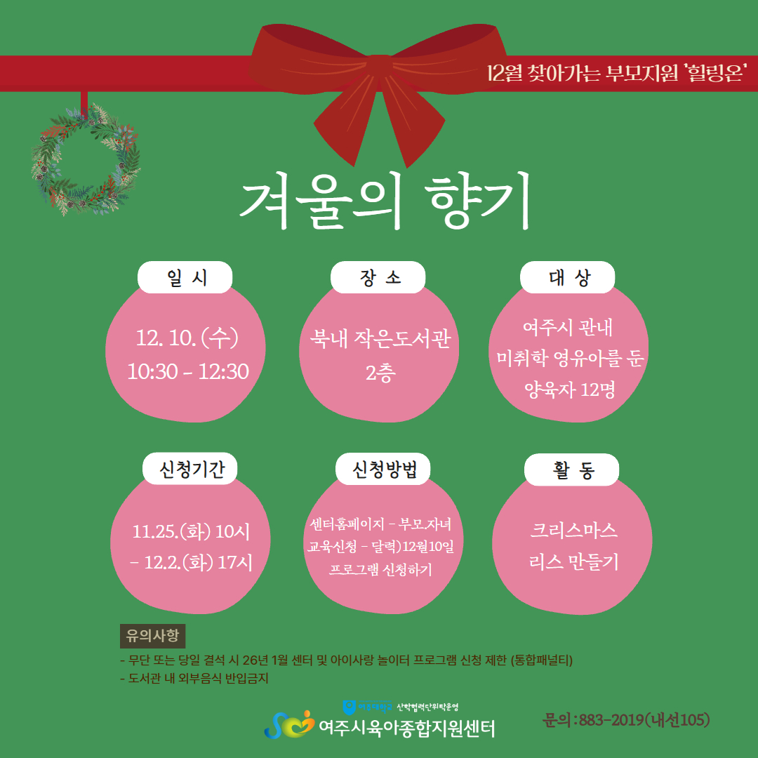| ã¾Æ°¡´Â ºÎ¸ðÁö¿ø ÇÁ·Î±×·¥ <Èú¸µ¿Â> '°Ü¿ïÀÇ Çâ±â' | |||