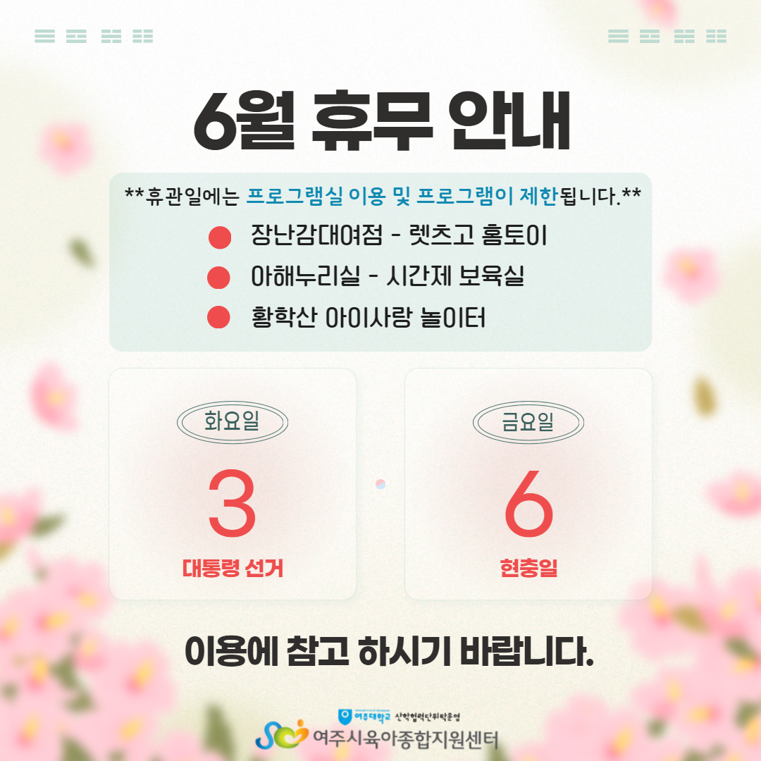 [¿î¿µ¾È³»]6¿ù ÈÞ¹«ÀÏ ¾È³»